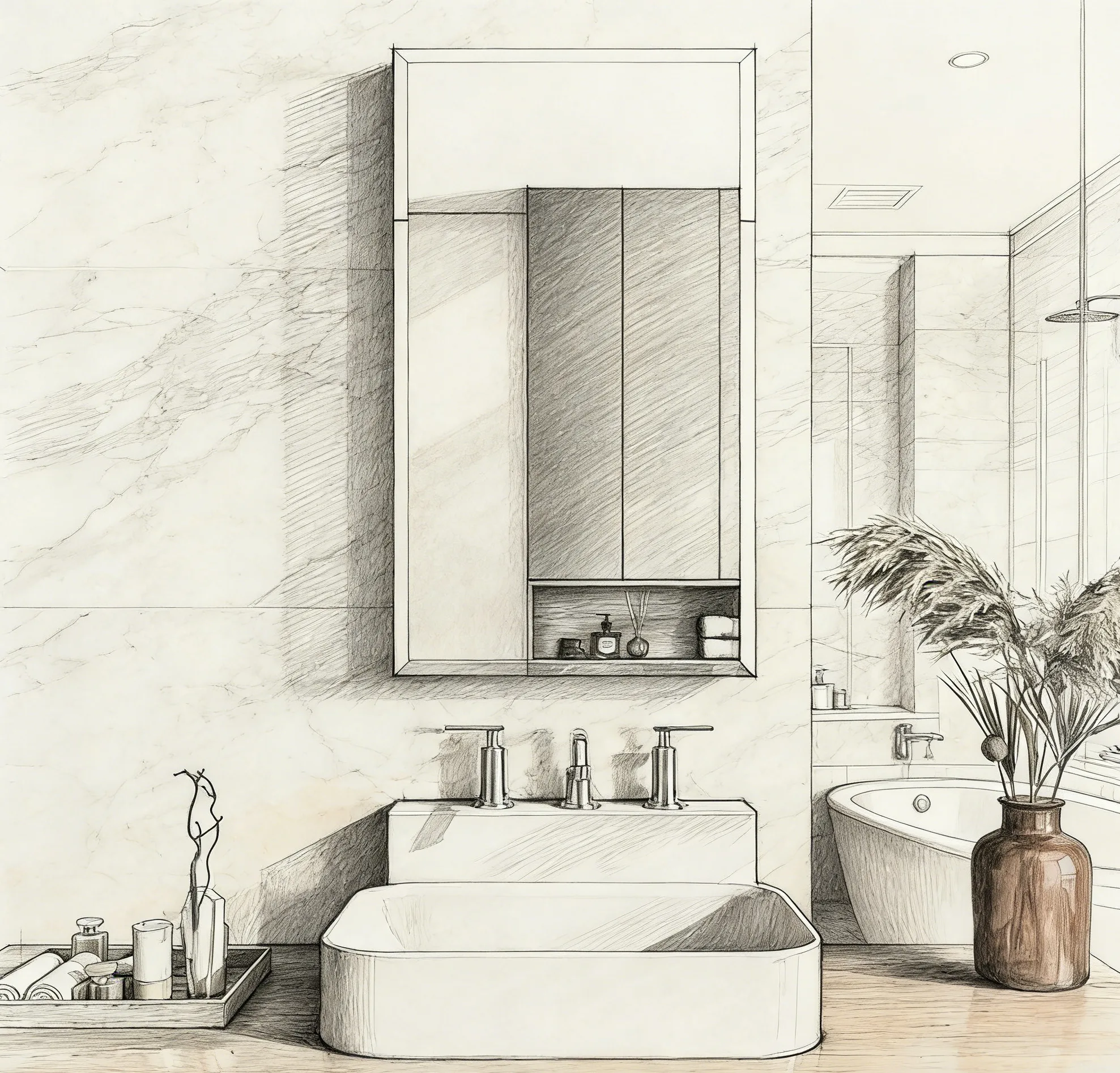 3. Custom Aluminium Mirror Cabinet Design Based on Bathroom Size