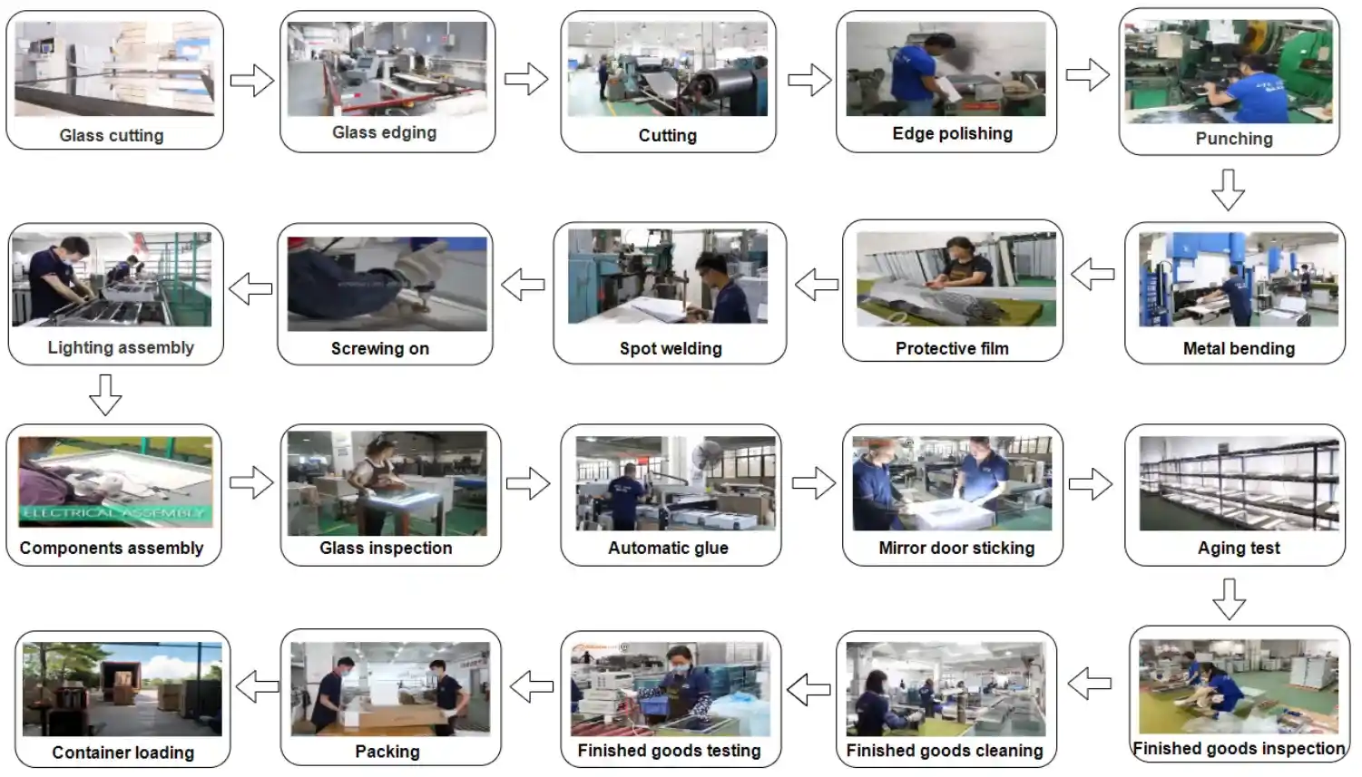 Нажмите на ссылку, чтобы просмотреть процесс производства зеркального шкафа Aosmay: https://www.youtube.com/@CynthiaTeeAosmay